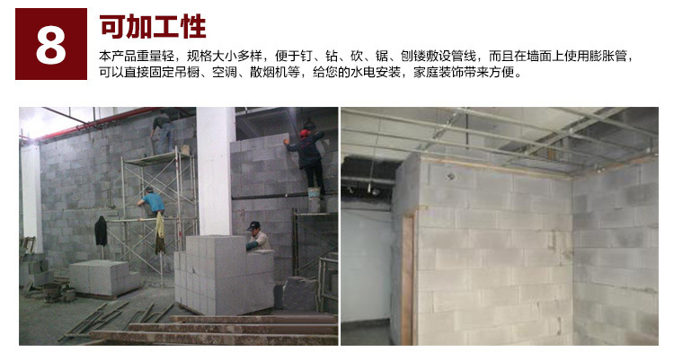 可加工性:本產(chǎn)品重量輕,規(guī)格大小多樣,便于釘、鉆、砍、鋸、刨鏤敷設管線,而且在墻面上使用膨脹管,可以直接固定吊櫥、空調(diào)、汕煙機等,給您的水電安裝,家庭裝飾帶來方便。